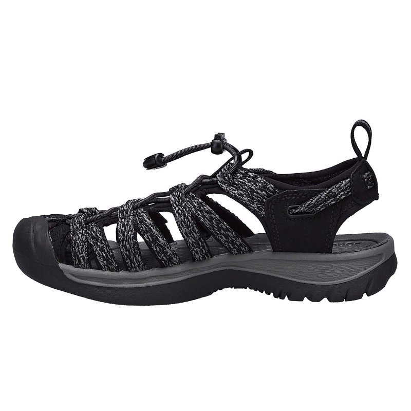 Die profilierte Gummilaufsohle ist im Zehenbereich schützend hochgezogen. Und zeigt sich hier als Keen-typische Zehenschutzkappe.