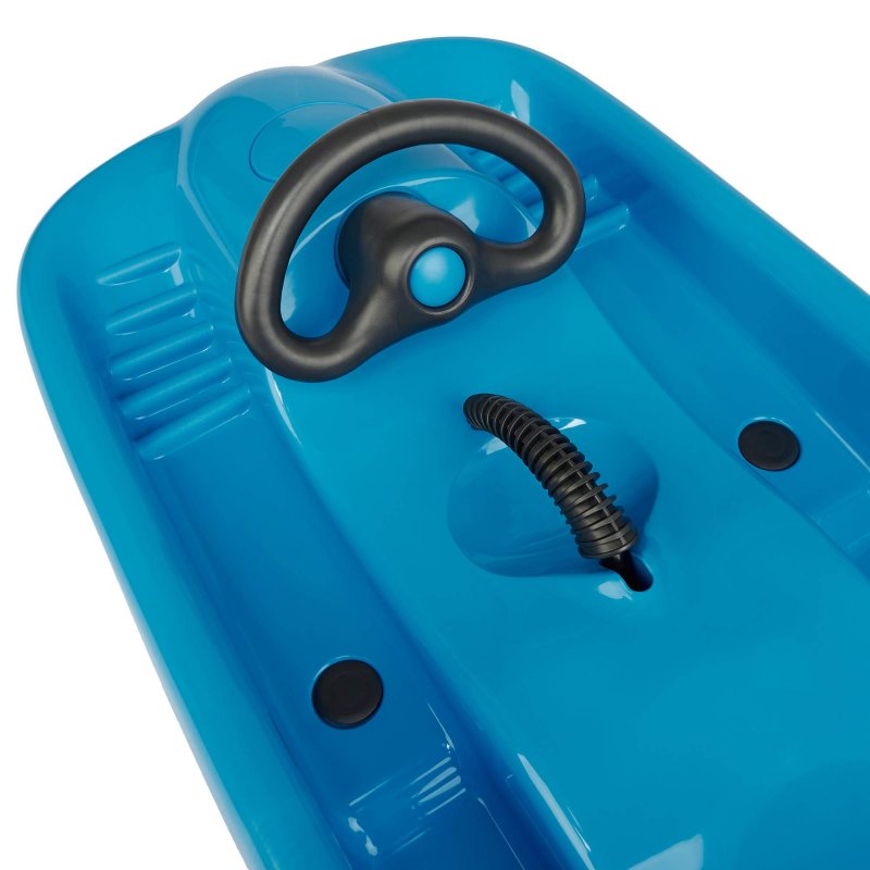 Flotter Bob mit eingespritzter, wannenförmiger Sitzschale, Lenkrad und effektiver Einhandbremse aus Metall. Die hochgezogenen Seitenteile und der erhöhte Bug sorgen für mehr Sicherheit während der Fahrt. Die Kufen gleiten wunderbar, bei allen Schneebedingungen.