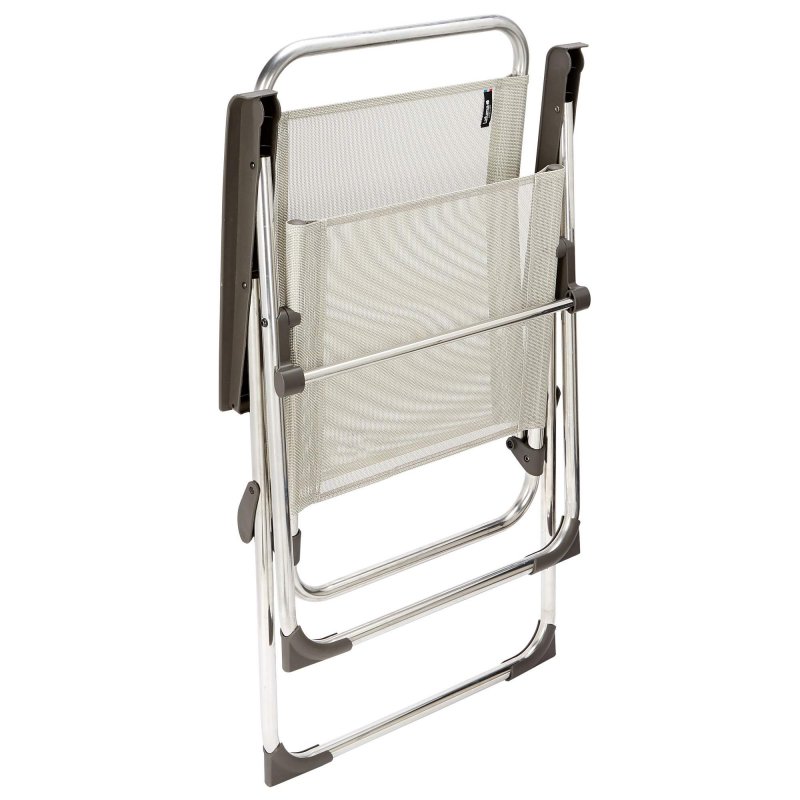 Die bequeme Sitzposition eignet sich ideal für Campingtische oder zum Chillen in der Sonne. Die Kunststofffüße schonen dabei den Fußboden, wodurch du den Alu Victoria im Innen- wie Außenbereich verwenden kannst.