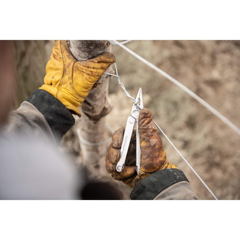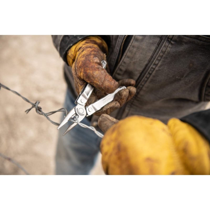 Aufgabe war es, ein Multitool zu schaffen, das die 14 wichtigsten Werkzeuge in einem kompakten Tool zusammenführt. Neben einer 7,4 cm langen 420-HC-Klinge befinden sich auch Kreuz- und Schlitzschraubendreher im Griff und natürlich eine kräftige Spitzzange mit Drahtschneider. Alle Tools sind innenliegend und die Klinge mit einem Nagelhau zu öffnen. Transportieren kannst du es zugriffsbereit im Nylonholster, das am Gürtel oder Rucksack befestigt werden kann. Damit ist es jederzeit griffbereit, wenn Arbeiten anstehen.