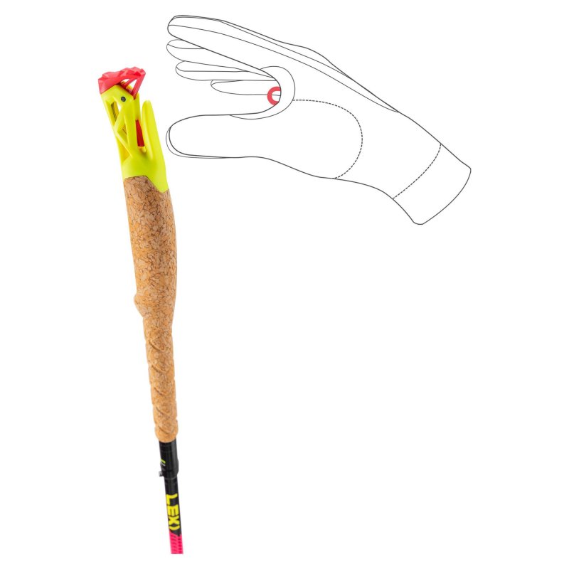 Die Shark Frame Handschlaufe sitzt wie angegossen und überträgt die Kraft direkt in das Zentrum des Stocks. Dank der schlanken Form des Shark Dorns wird der Loop zum Einklicken selbst mit geschlossen Augen getroffen. Eine zusätzliche Nase am Griff sowie die Griffverlängerung bieten weitere Griffoptionen.