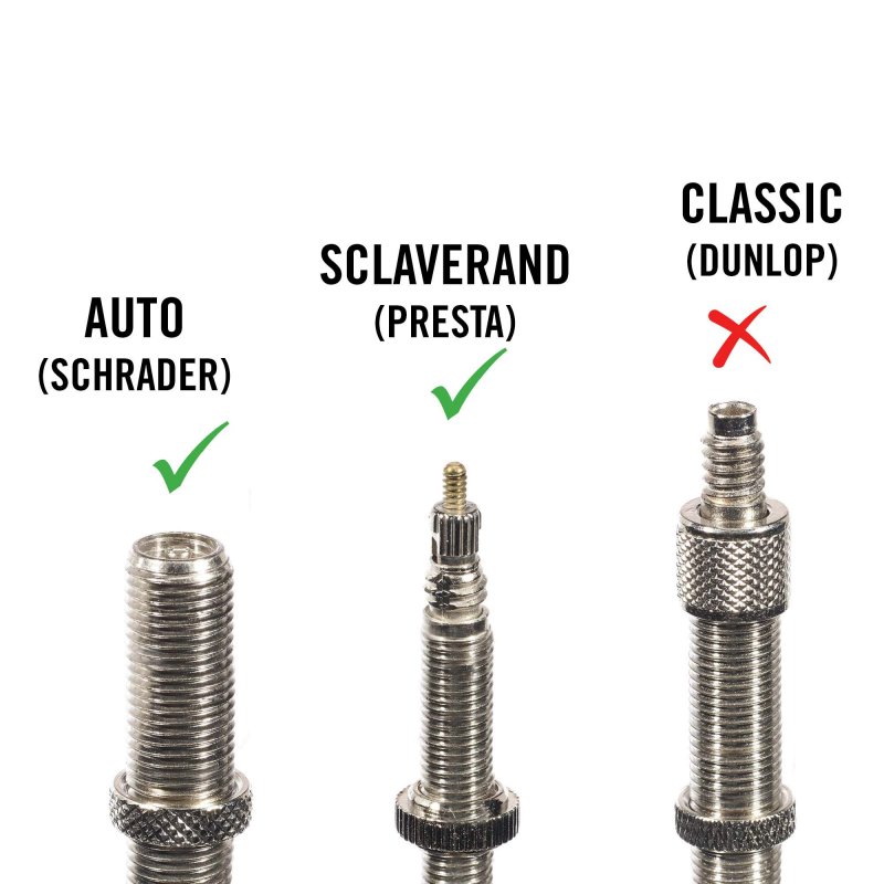 Geeignet für Autoventil (AV, Schrader) und Sclaverandventil (SV, Französisches Ventil)