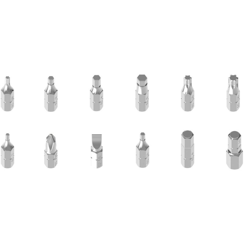 Feines, hochwertig verarbeitetes Werkzeugset mit Drehmomentschlüssel. Der abnehmbare T-Griff wird zusammen mit dem Schlüssel und den 12 Bits platzsparend in einer Werkzeugtasche verstaut.
