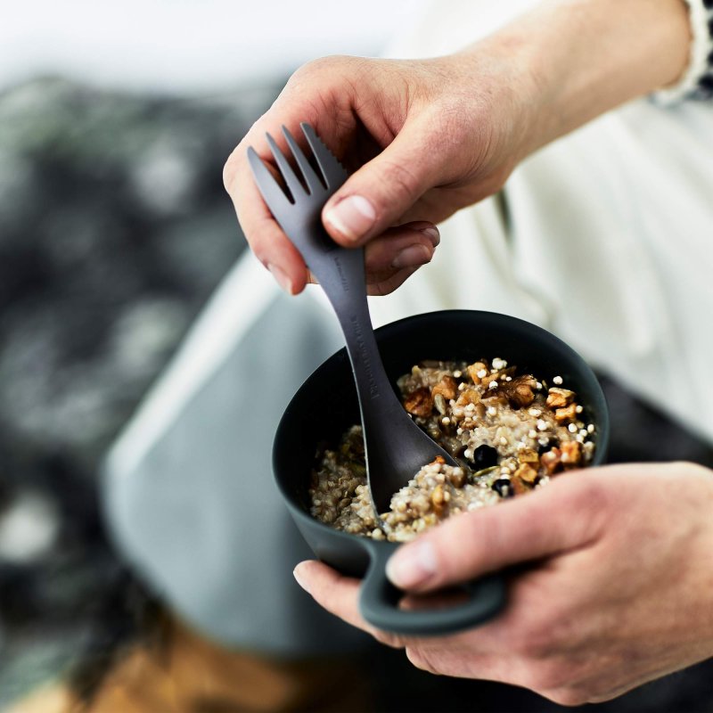 Die in Schweden hergestellte Schüssel besitzt ein Volumen von 300 ml und besteht aus biobasiertem Kunststoff auf Zuckerrohrbasis.