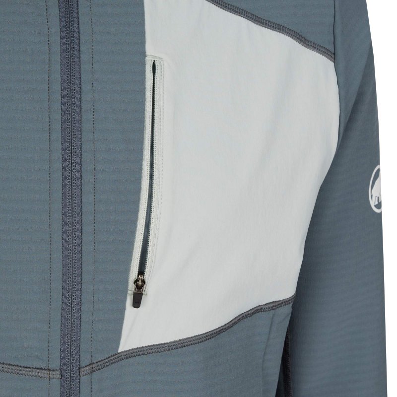 Die Außenseite hält kühlen Wind in Schach und ist so elastisch, dass auch ausladende Steig- oder Kletterbewegungen problemlos möglich sind. Die Innenseite kann dank ihrer weichen Waffelnstruktur mit einem erstklassigen Feuchtigkeitsmanagement sowie einem sehr guten Wärme-Gewichtsverhältnis auftrumpfen. Praktisch auf längeren Touren: Dank der naturbasierten, silberfreien HeiQ Fresh-Ausrüstung nimmt die Jacke nur langsam unangenehme Gerüche an.
