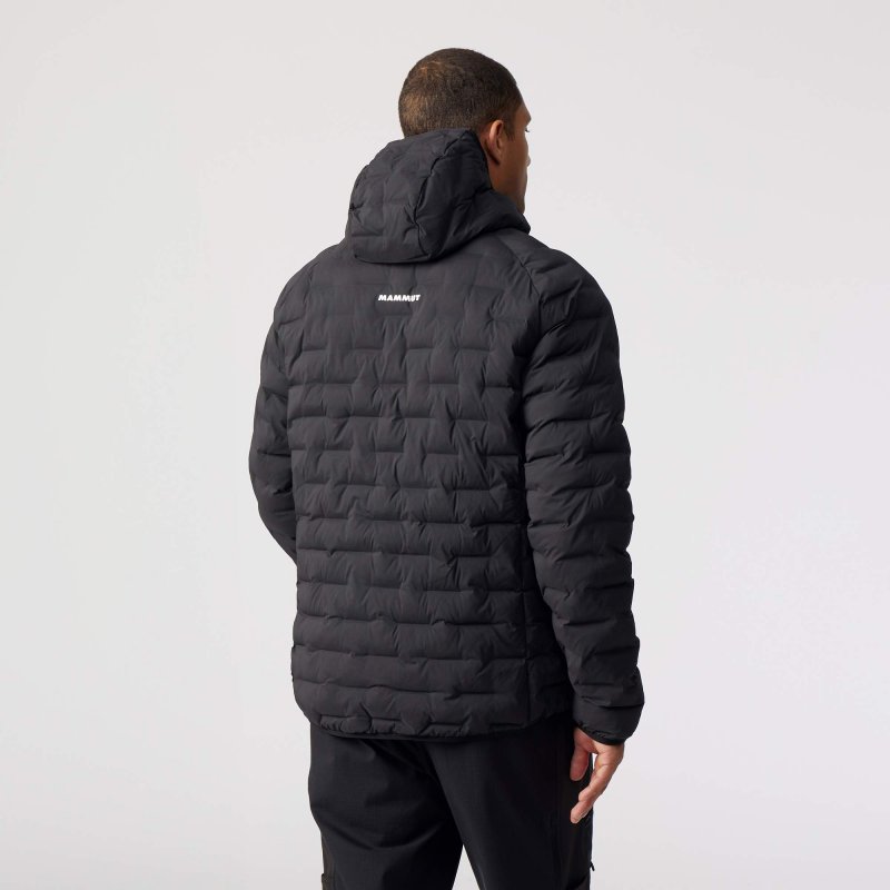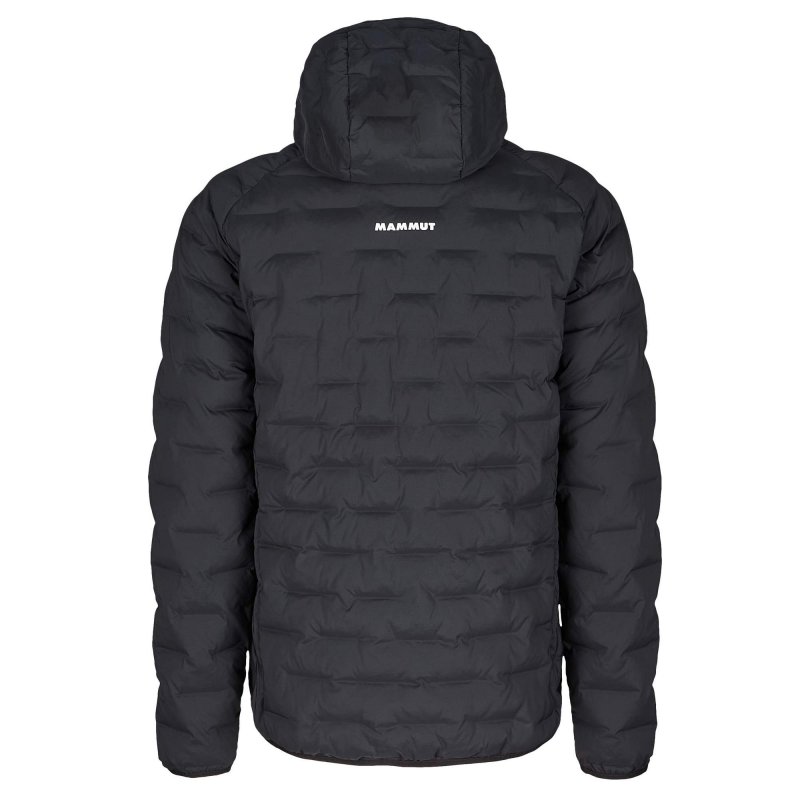 Als Füllmaterial kommt Mammuts spezielle Loopinsulation zum Einsatz. Für diese Kunstfaser-Isolierung werden Produktionsabfälle verwertet, die bei der industriellen Herstellung von Seilen anfallen. Das verwendete Material schont nicht nur Ressourcen, sondern hält dich selbst bei Minusgraden angenehm warm. Außerdem ist es im Gegensatz zu Füllungen aus Daunen unempfindlich gegenüber Feuchtigkeit. Das Außenmaterial ist ebenfalls recycelt sowie wind- und wasserabweisend.