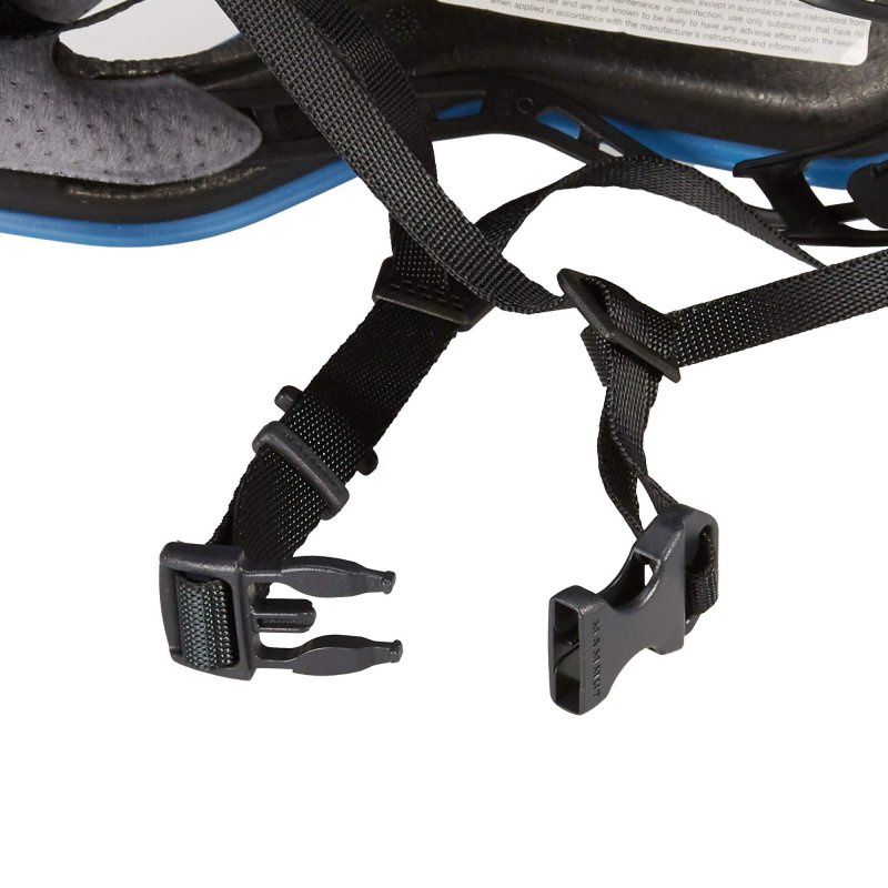 Der Kletterhelm kombiniert eine schlagfeste Hartschale mit einer EPP- und EPS-Innenschale und über die gesamte Innenseite verteilte Schaumstoffpolster. So wird bis zum Helmrand hin bester Schutz vor frontalen, hinteren und auch seitlichen Aufschläge geboten.