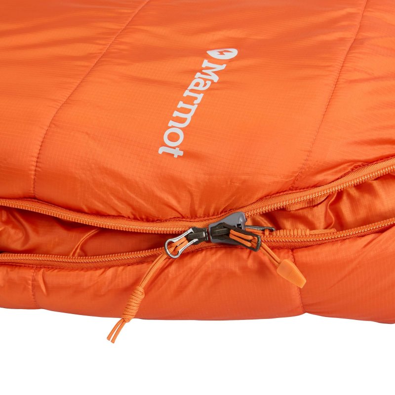 Der Schlafsack verfügt über Reißverschlüsse auf beiden Seiten. Der lange Hauptreißverschluss ist mit einem Anti-Snag-Zipper ausgestattet, der ein Einklemmen des Materials verhindert. Zudem kann er von unten zur Belüftung geöffnet werden. Auf der rechten Seite befindet sich ein 35 cm langer Reißverschluss, der ebenfalls zur Belüftung dient oder morgens für mehr Bewegungsfreiheit sorgt. So kannst du deinen ersten Kaffee genießen, ohne den Schlafsack verlassen zu müssen.