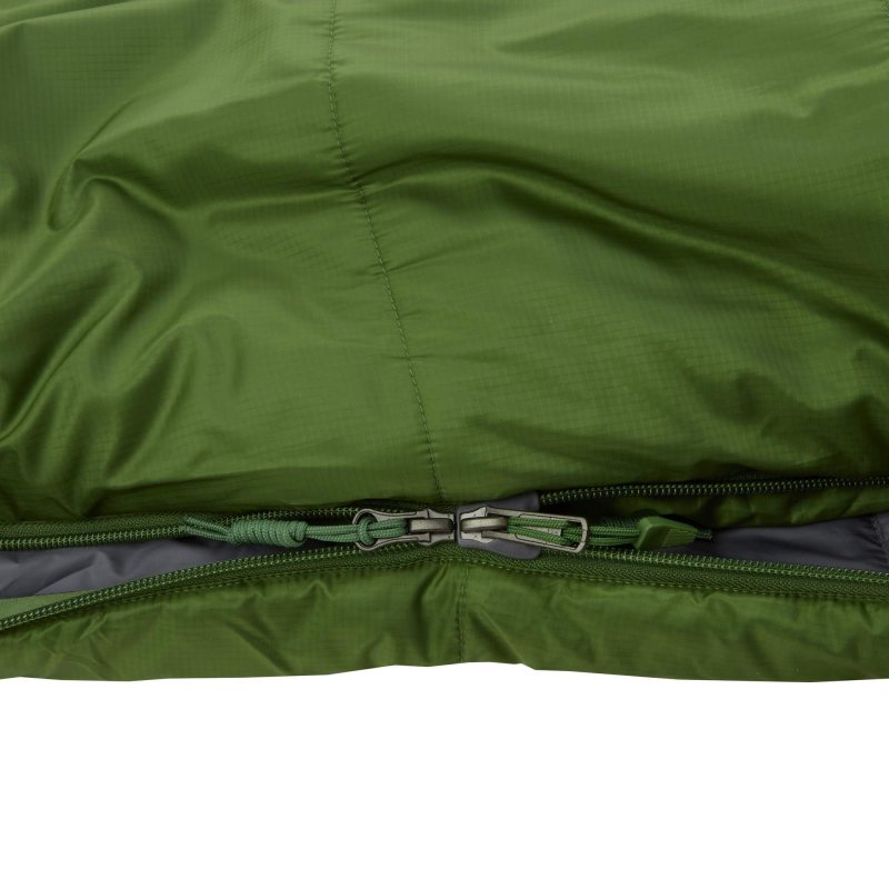 Der Schlafsack verfügt über Reißverschlüsse auf beiden Seiten. Der lange Hauptreißverschluss ist mit einem Anti-Snag-Zipper ausgestattet, der ein Einklemmen des Materials verhindert. Zudem kann er von unten zur Belüftung geöffnet werden. Auf der rechten Seite befindet sich ein 35 cm langer Reißverschluss, der ebenfalls zur Belüftung dient oder morgens für mehr Bewegungsfreiheit sorgt. So kannst du deinen ersten Kaffee genießen, ohne den Schlafsack verlassen zu müssen.