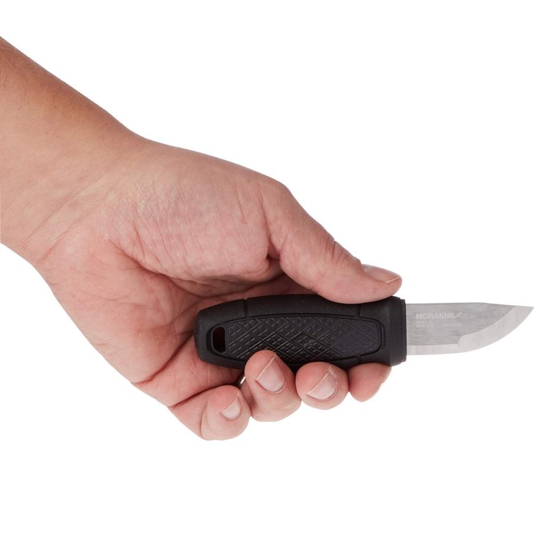 Für gröbere Arbeiten lässt sich mit dem Daumen viel Druck auf die zwei Millimeter breite, kräftige Klinge bringen. Der Griff aus Polymer-Kunststoff ist im Verhältnis zur Klinge groß, was ein unbedingter Vorteil ist: Dadurch kannst Du auch dann vernünftig mit dem Eldris arbeiten, wenn Du keine zu klein geratenen Hände hast!