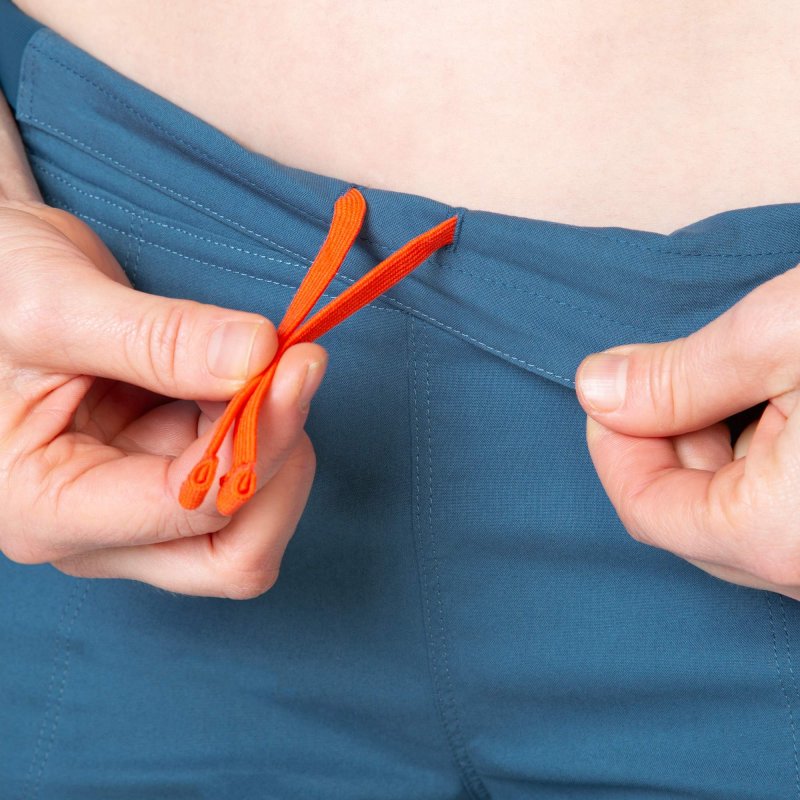 Die Shorts hat einen breiten, flachen Stretch-Bund, der gut unter den Klettergurt passt. Ein Schnürzug auf der Innenseite des Bundes ermöglicht es dir, die Weite individuell einzustellen. Zwei Gesäßtaschen und zwei Einschubtaschen bieten Platz für nützliche Kleinigkeiten.