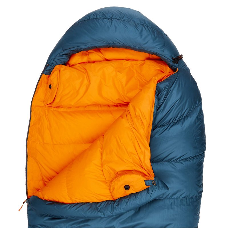 DC5 Kapuze, anatomisch geschnitten und mit fünf Daunenkammern. (Nicht beim Helium Solo)