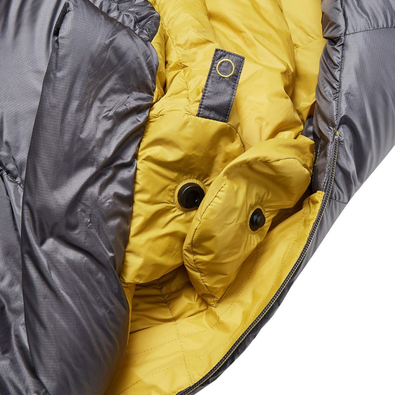 Zahlreiche Details machen Mountain Equipments Schlafsäcke unverwechselbar. Angefangen bei den haptisch unterscheidbaren Schnürzügen an der Kapuze, damit du in der Nacht weißt, ob du den oberen Teil der Kapuze (runde Kordel) oder den Kinnbereich (flache Kordel) zuziehst. Am Wärmekragen setzt Mountain Equipment auf einen Fidlock Magnetverschluss. Es entfällt damit das Herumnesteln an Druckknöpfen. Einfach den Verschluss übereinanderführen, um ihn zu schließen und an der Lasche ziehen, um ihn wieder zu öffnen.