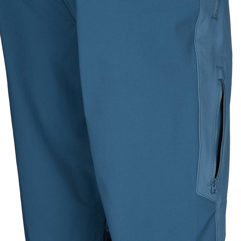 Die mitteldicke Hose besteht aus einem angenehm weichen, aber dennoch äußerst robusten Gemisch aus Polyamid und Elasthan, wodurch sie auch für den Einsatz in den Bergen oder beim Trekking im rauen Gelände bestens geeignet ist. Das Materialgemisch kann mit einem sehr guten Feuchtigkeitsmanagement aufwarten. So liegt die Hose schnell wieder angenehm trocken auf der Haut, wenn du auf herausfordernden Etappen ins Schwitzen geraten bist. Alle Taschen sind mit einem feuchtigkeitsleitenden Mesh-Futter ausgestattet. Lässt du die Taschen öffnen, lässt das Futter mehr Luft an deine Beine und sorgt so für wohltuende Abkühlung beim ambitionierten Einsatz.