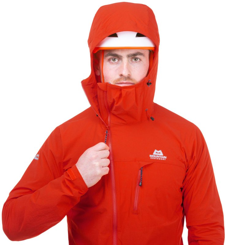 Viele durchdachte Details runden den hohen Tragekomfort der Jacke ab. So bietet der besonders hohe Stehkragen zusammen mit der voll verstellbaren, helmtauglichen Kapuze Schutz bei ungemütlicher Wetterlage. Der Front-Reißverschluss verläuft für weniger Hautirritationen im oberen Teil asymmetrisch. Der Schnürzug im Saum wird an zwei Enden – und nicht wie üblich mit einer Schlaufe – zusammengezogen. So kannst du den Schnürzug perfekt regulieren und kannst zum Beispiel beim Klettern nicht an der Schlaufe hängen bleiben. Auch praktisch auf Touren mit wenig Platz im Gepäck: Die Jacke lässt sich platzsparend in der eigenen Brusttasche verpacken. Findest du keinen Platz mehr im Rucksack, kannst du die verpackte Jacke einfach an der Karabinerschlaufe am Rucksack befestigen.