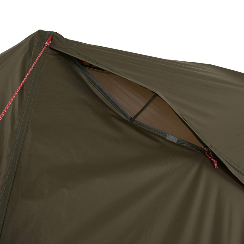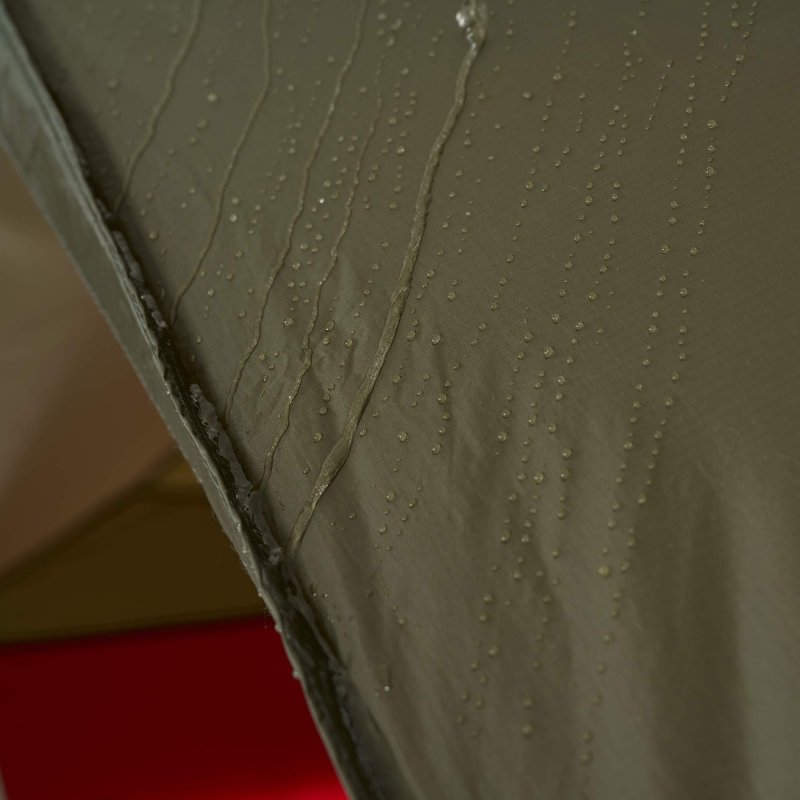 Entscheiden musst du dich hier nicht, denn das Zelt ist für die 3-Jahreszeiten-Nutzung konzipiert. Lediglich beim Aufbau solltest du mal einen Blick in den Himmel wagen. Ist das Wetter unbeständig, spannst du das Zelt gut ab. Das hochgezogene Außenzelt und der Lüfter in der Apside reduzieren Kondenswasser und sorgen für einen guten Luftaustausch im Innenzelt. Und damit du morgens nicht von einer unfreiwilligen Dusche beim Öffnen des Zeltes überrascht wirst, befindet sich über dem Eingang eine Regenschutzleiste, die Wasser vom Zeltdach seitlich abweist.