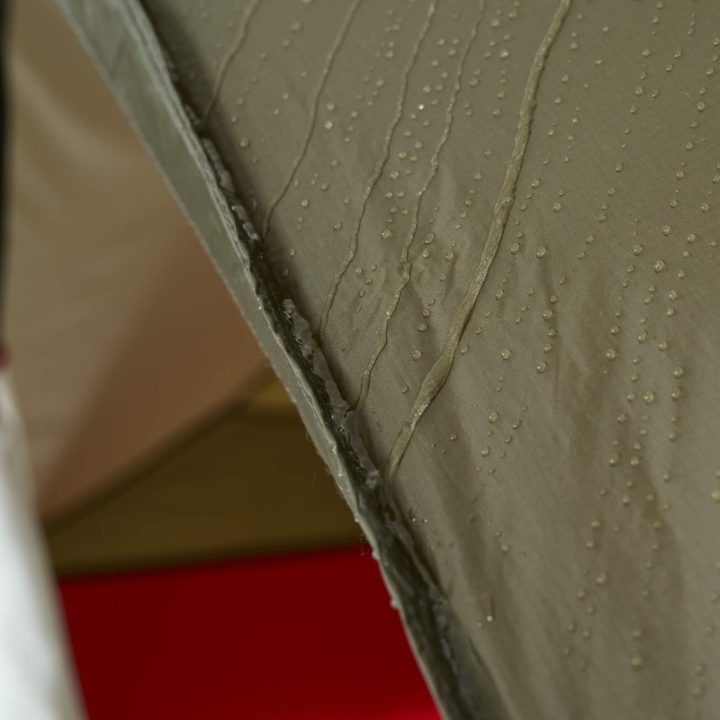 Entscheiden müsst ihr euch hier nicht, denn das Zelt ist für die 3-Jahreszeiten-Nutzung konzipiert. Lediglich beim Aufbau solltet ihr mal einen Blick in den Himmel wagen. Ist das Wetter unbeständig, spannt ihr das Zelt gut ab. Das hochgezogene Außenzelt und der Lüfter in der Apside reduzieren Kondenswasser und sorgen für einen guten Luftaustausch im Innenzelt. Und damit ihr morgens nicht von einer unfreiwilligen Dusche beim Öffnen des Zeltes überrascht werdet, befindet sich über beiden Eingängen eine Regenschutzleiste, die Wasser vom Zeltdach seitlich abweist.