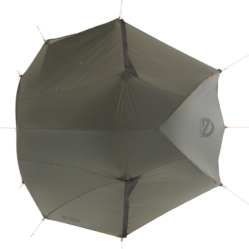 Gerade die Details verdienen einen genauen Blick. So sind die Türhalter leichter zu bedienen als bei anderen Modellen und auch einhändig bedienbar. Zusätzlich befinden sich zwei Deckentaschen mit Diffusorfunktion im Innenzelt, in der du deine Stirnlampe hineinlegen kannst, um das Zelt ausleuchten zu können. Noch mehr Stauraum steht dir im Gear Loft und der großen Tasche im Fußbereich zur Verfügung, in der auch die Helme einen Platz finden.