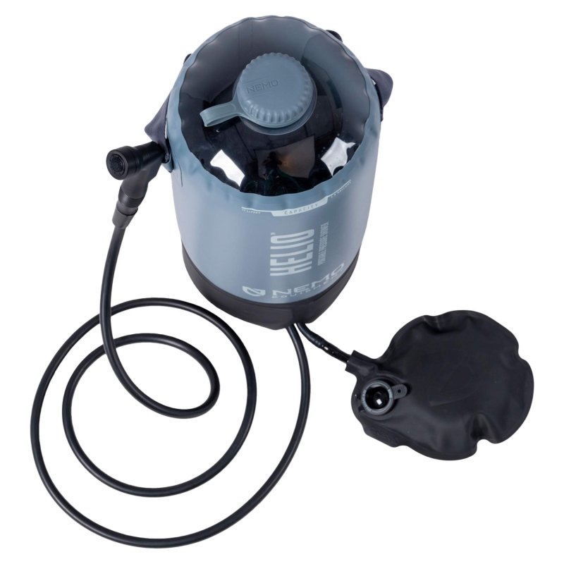 Mit ihrem 11-Liter-Tank und der cleveren Fußpumpe für gleichmäßigen Wasserdruck bietet die Helio Pressure Shower unterwegs den Komfort einer warmen Dusche. Doch die Einsatzmöglichkeiten gehen weit über das Duschen hinaus: Ob zum Abspülen von Surf- oder Tauchausrüstung, Reinigen von Hund und Trekkingrad oder Abwaschen von Geschirr – die Anwendungsmöglichkeiten sind nahezu unbegrenzt.