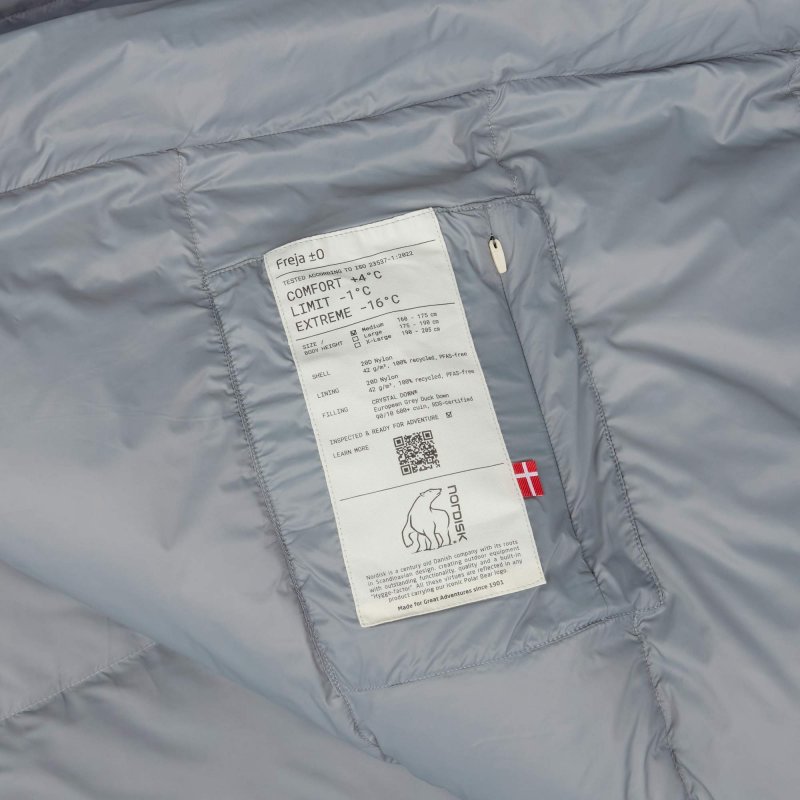 Gefüllt mit europäischer Entendaune und in Deutschland verarbeitet, bietet der Schlafsack eine hohe Wärmeleistung bei geringem Packmaß. Die Außen- und Innenmaterialien bestehen vollständig aus recyceltem Polyester.