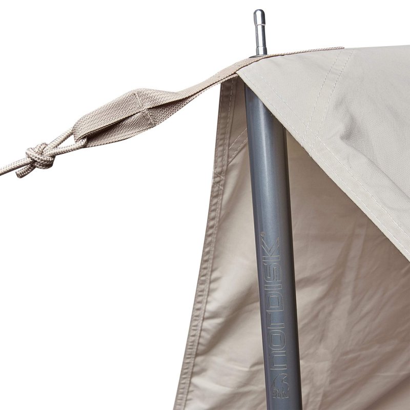 Das Tarp reiht sich nahtlos in die Baumwoll-Serie von Nordisk ein und ist die ideale Ergänzung zu den Tipis und Familienzelten. Besonders im Sommer spielt das Baumwollmischgewebe seine Stärken aus. Das schattige Plätzchen ist kühler und durch das atmungsaktive Material viel angenehmer als unter seinen Pendants aus Kunststoff.
