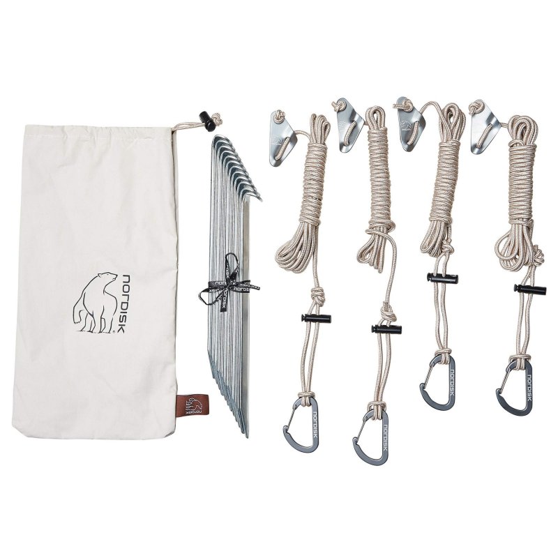 Das Baumwolltarp wird mit stabilen, höhenverstellbaren Aufstellstangen und dicken Abspannleinen samt Heringen geliefert. Dank der Vielzahl an Abspannpunkten kannst du das Kari 8 unabhängig von einem Zelt an nahezu jedem Ort aufstellen. Es stehen dir 8 Gurtbandschlaufen zur Verfügung, an denen eine Öse zur Befestigung einer Tarpstange eingearbeitet ist. Zusätzlich gibt es 4 einzelne Ösen.