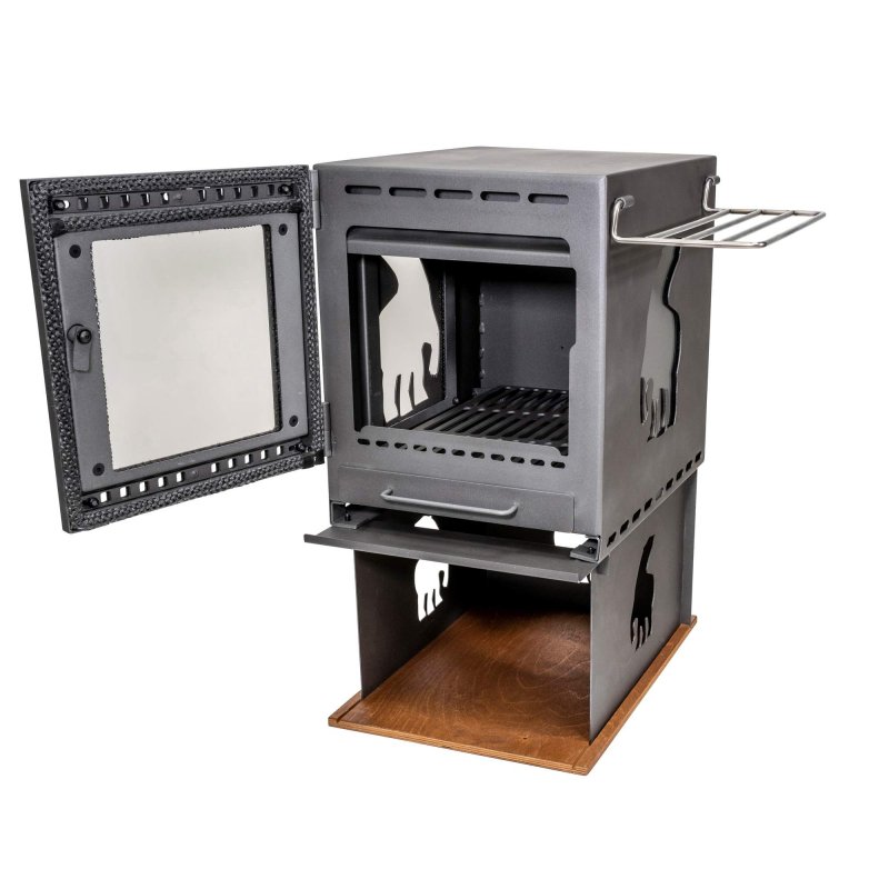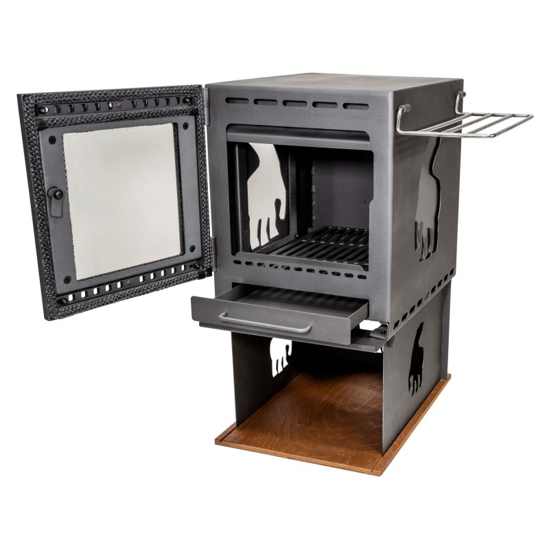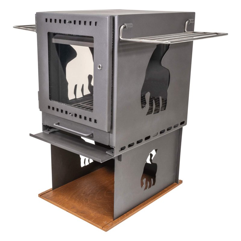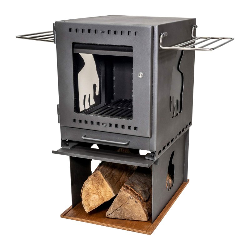 - Holzofen, Rohrset, Glutmatte, Feuerhandschuhe, Tragetasche, 2 zusätzliche Türgriffe