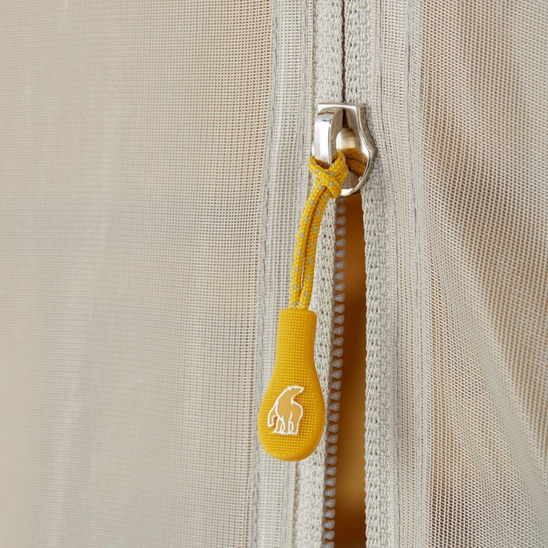 So enthält das Set ein passendes Gestänge sowie einen Satz Heringe und eine Wäscheleine. Zum Abspannen sind passende Leinen mit Wimpeln enthalten, in denen du Kleinkram verstauen kannst. Die Standard-Zip-Anhänger ersetzt du mit den Zughilfen im Set. Alle Teile sind farblich aufeinander abgestimmt und bringen so frischen Wind und ein paar Farbtupfer ins Camp!