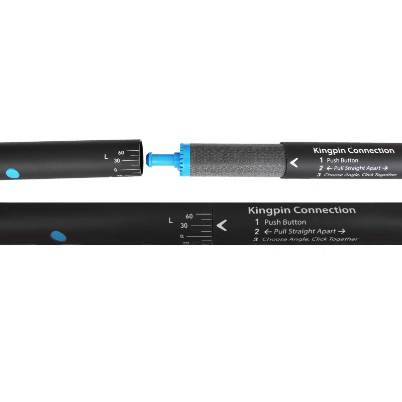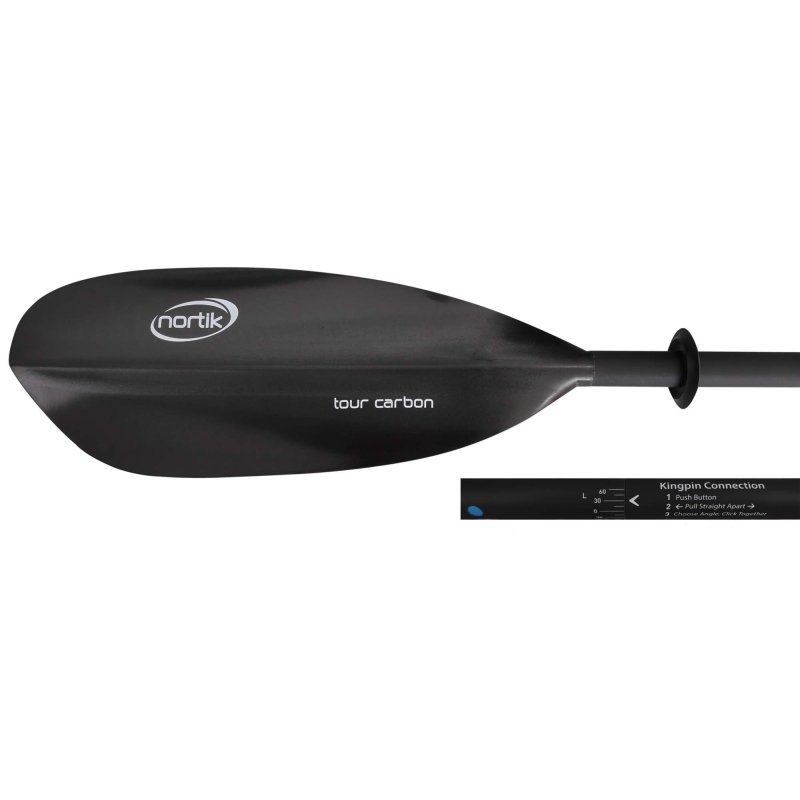 Die neue Kingpin-Teilung, die bei dem Tour Carbon zum Einsatz kommt, lässt sich in 15° Schritten frei einstellbar verschränken. Der Mechanismus liegt hierbei im Inneren des Paddelschafts, wodurch keine störenden Schräubchen oder Verschlussteile an der Außenseite nötig sind. Die Kingpin-Teilung lässt sich sehr einfach bedienen, ist wartungsfrei und ermöglicht dir eine schnelle Anpassung.