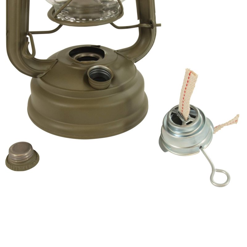 Sturmlaterne mit bis zu 20 Stunden Leuchtdauer. Der Tank fasst 340 ml und wird über die seitliche Öffnung befüllt. Der Betrieb ist mit Lampenöl oder Petroleum möglich.