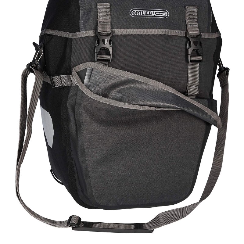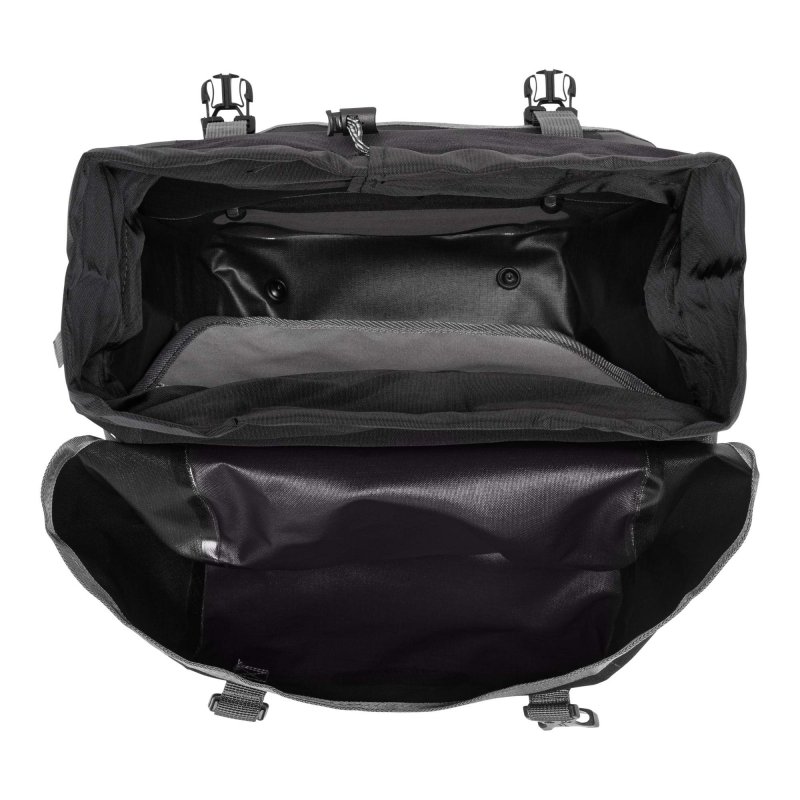 Plus-Variante der Ortlieb-Hinterradtaschen mit Deckel – leichter und aus hochwertigerem, PVC-freiem Cordura-Nylon! Der eingenähte Schnürverschluss hilft, den Inhalt spritzwasserdicht zu verstauen.
