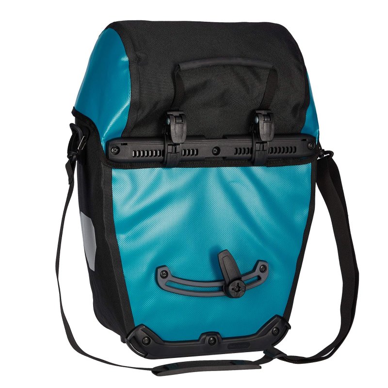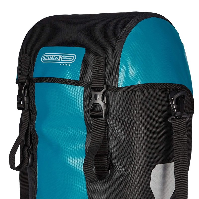 Der eingenähte Schnürverschluss hilft, den Inhalt spritzwasserdicht zu verstauen. Kompressionsriemen mit Blitzverschluss fixieren den Deckel zuverlässig.