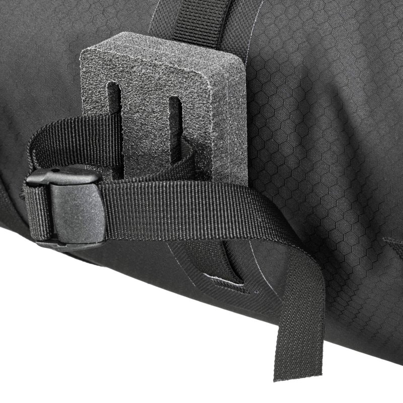 Die robuste Gepäckrolle hat ein großzügiges Volumen und hält ihren Inhalt zuverlässig trocken. Je ein Rollverschluss an den Enden erlaubt schnellen und komfortablen Zugriff auf den Taschen-Inhalt. Die vier Leichtmetallhaken mit Klemmschnalle am Riemen dienen der Kompression und können zudem das Accessory-Pack auf der Vorderseite des Handlelbar-Pack fixieren.