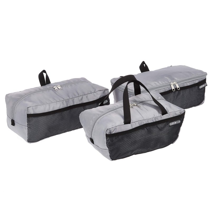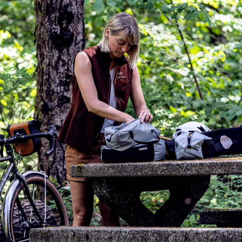 Die Packing Cubes haben ein Volumen von 2x 6 L und 1x 5 L und passen übereinander perfekt in die Hinterradtasche. Die oberste und unterste Tasche besitzt je einen mittigen Reißverschluss, die mittlere Tasche einen umlaufenden Reißverschluss. Dadurch hast du deine Sachen schnell griffbereit.