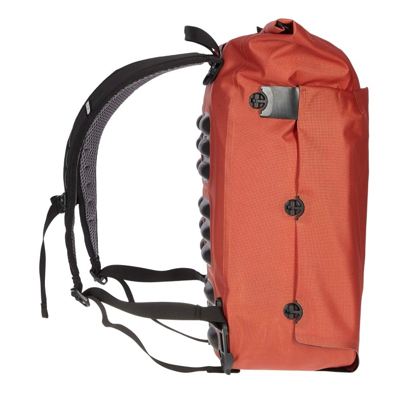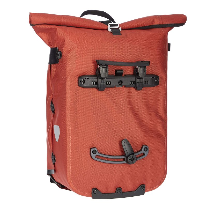Der Clou: Du kannst es von der einen Seite auf die andere Seite in Sekunden umklappen und fixieren. Fertig ist die Fahrradtasche, respektive der Rucksack! Einfacher kann man samt Tasche gar nicht vom Drahtesel auf Schusters Rappen wechseln. Das Flap schützt jeweils die abgedeckte Seite. Und es bewahrt dich vorm Schmutz, der eventuell vom Hinterrad an deine Packtasche geschleudert wurde.