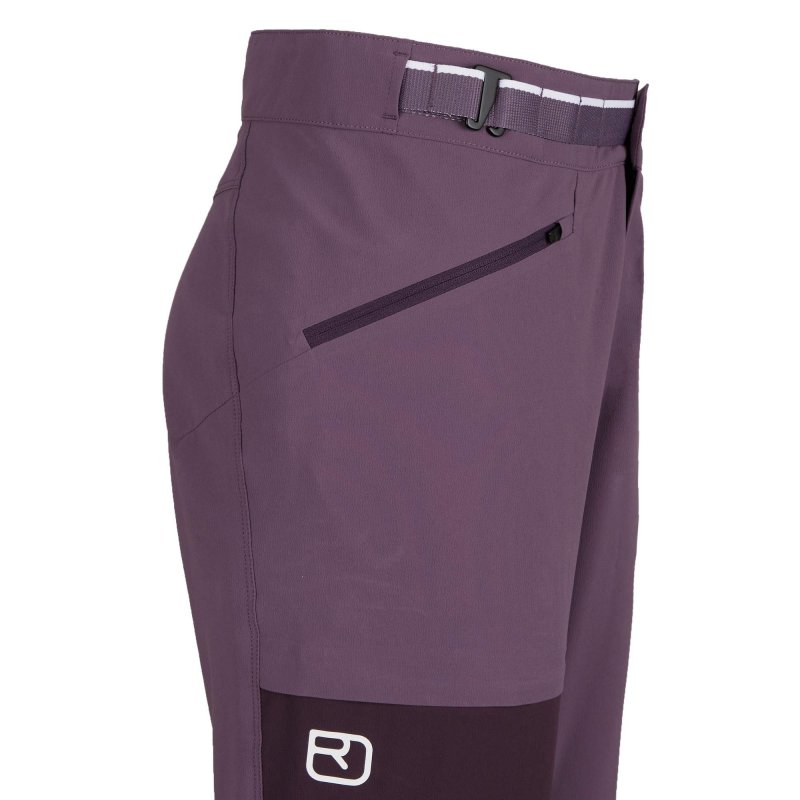 Die Innenseite des hoch geschnittenen Hosenbunds besteht aus einem luftigen, feuchtigkeitsleitenden Meshgewebe, in der eine gute Portion weiche Merinowolle steckt. Der überarbeitete, lockere Schnitt trägt ebenfalls zum hohen Komfort der Hose bei. Praktisch: Der integrierte Gürtel muss nur einmalig per Haken an der rechten Seite auf die passende Weite eingestellt werden. Da er nicht über dem Verschluss der Hose befestigt ist, braucht er auch nicht geöffnet zu werden, wenn die Hose an- oder ausgezogen wird. Drei Reißverschluss-Taschen beherbergen alle wichtigen Kleinigkeiten, die du unterwegs schnell zur Hand haben willst. Die Beinabschlüsse kannst du bei Bedarf enger stellen, um bessere Sicht auf den Fels zu haben.Ortovox Wool Promise
