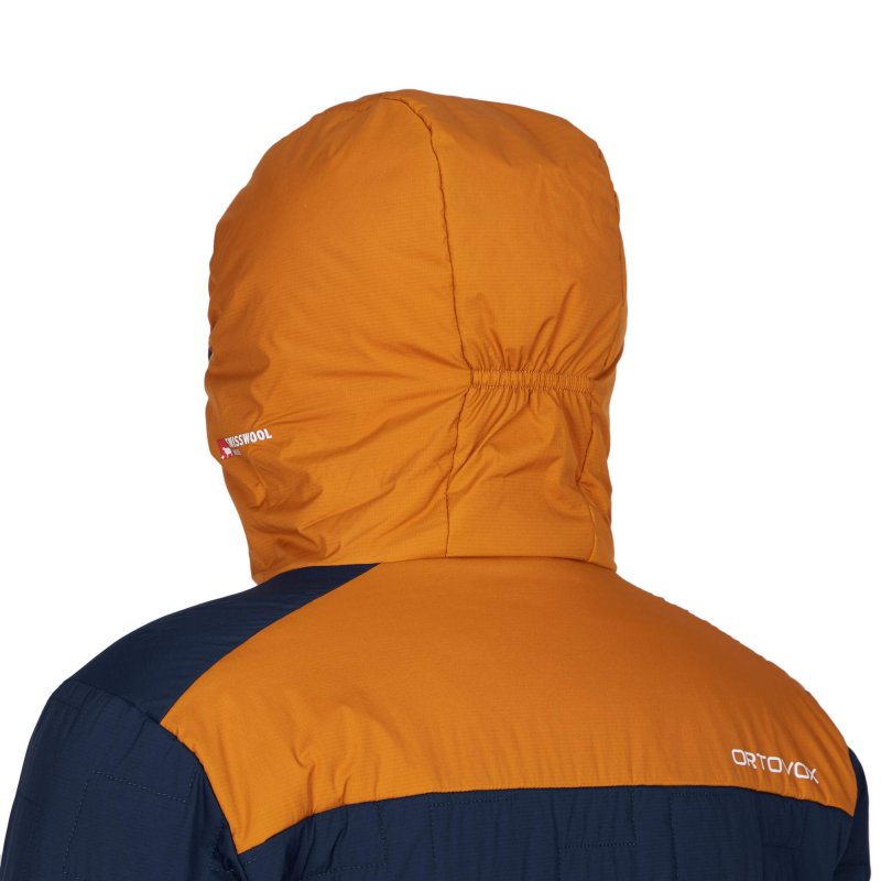 An den Seiten erhöhen dehnbare sowie innen weich aufgebürstete Merino-Fleece-Einsätze den Tragekomfort. Der hohe Kragen sowie die Kapuze bieten zusätzlichen Schutz bei kalter Wetterlage. Für eine ideale Passform bei Bewegungen sorgt der High-Reach-Performance Fit mit ergonomisch geformten Ärmeln und elastischen Abschlüssen. Zwei RV-Taschen statten die leichte Isolationsjacke mit dem nötigen Stauraum aus.