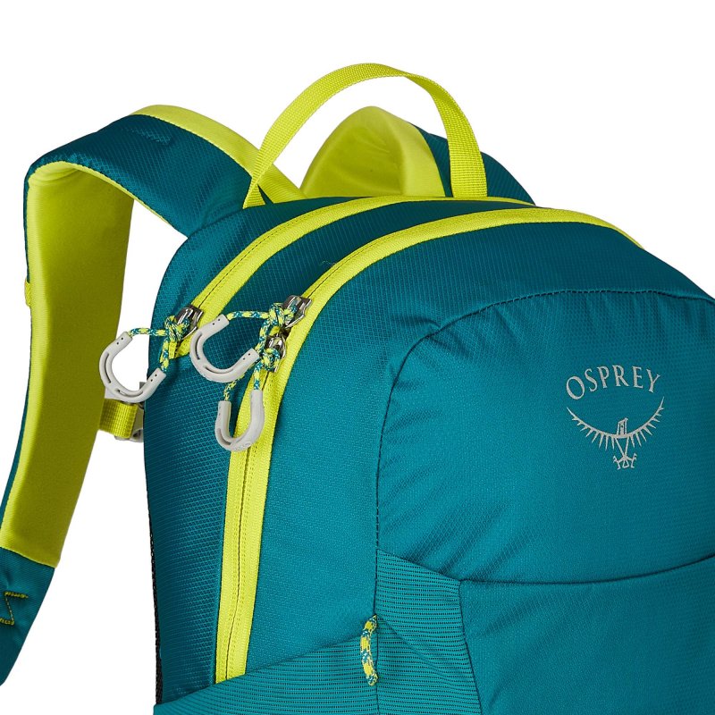 Der Jet 12 ist ein sportlicher Kinderrucksack mit einem weich gepolsterten Kontaktrücken. Für warme Wandertage und Radtouren lässt er sich mit der Osprey Hydraulics 1,5 L bestücken.