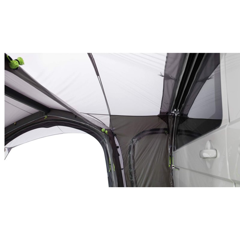 Das geräumige Vorzelt lässt sich an Fahrzeugen mit einer Höhe zwischen 175 und 200 cm Höhe anbauen. Dank Doppel-Keder-Konstruktion lässt es sich außerdem lückenlos an entsprechenden Schienen montieren. Was außerdem für das Parkville spricht: Wenn du dein Auto tagsüber für Ausflüge oder Einkäufe benötigst, kannst du das Zelt einfach stehen lassen. So behältst du nicht nur deinen schönen Platz, sondern sparst dir auch unnötiges und entnervendes Ein- und wieder Auspacken. Für besseren Sichtschutz und eine entspanntere Atmosphäre bei starkem Sonnenschein sind die Fenster außerdem leicht verdunkelt.