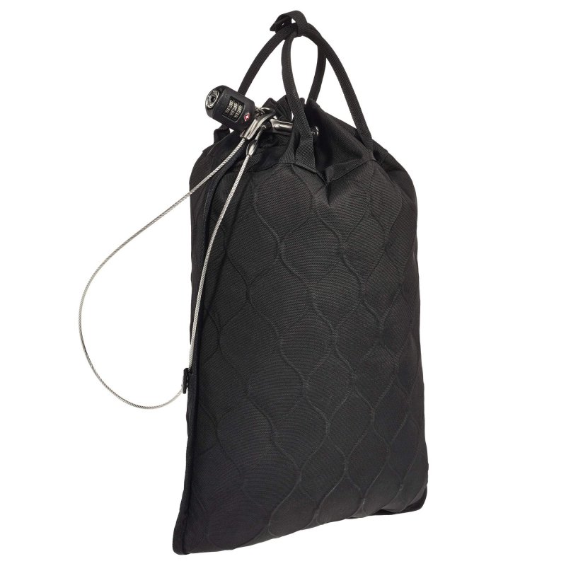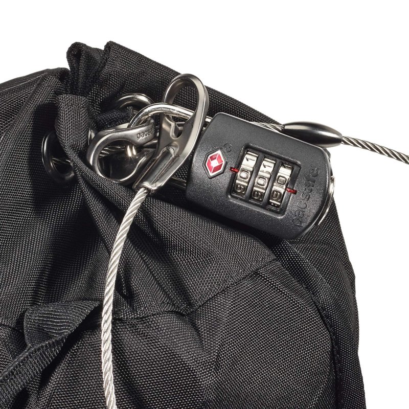 Mit dem mitgelieferten Zahlenschloss und dem hochfesten Stahlkabel kannst du den Travelsafe 12L GII Portable Safe an unbeweglichen Gegenständen, wie z.B. dem Hochbett im Mehrbettzimmer oder auch dem Strandkorb, anschließen und damit gleichzeitig abschließen.
