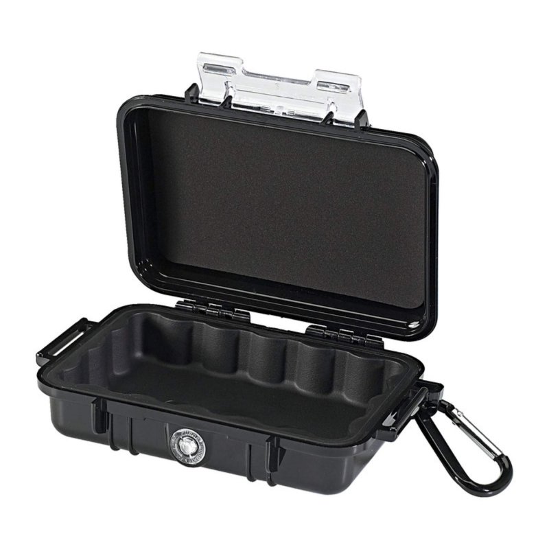 Das Microcase 1010 schützt seinen Inhalt vor Erschütterungen, Staub und Wasser und hat eine gummierte Innenseite. Es ist die kleinste Ausrüstungsbox der Serie