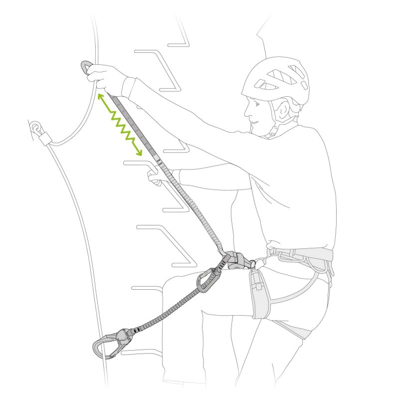 Der Scorpio Bandfalldämpfer, das Herzstück der Petzl Klettersteigsets, ist sehr leicht und kompakt gestaltet, damit er dich beim Klettern nicht stört. Er ist für Personen mit einem Körpergewicht ab 40 kg bis 120 kg geeignet. Die Lastarme sind sehr elastisch und ermöglichen dir beim Umhängen der Karabiner an den Zwischensicherungen eine große Reichweite.