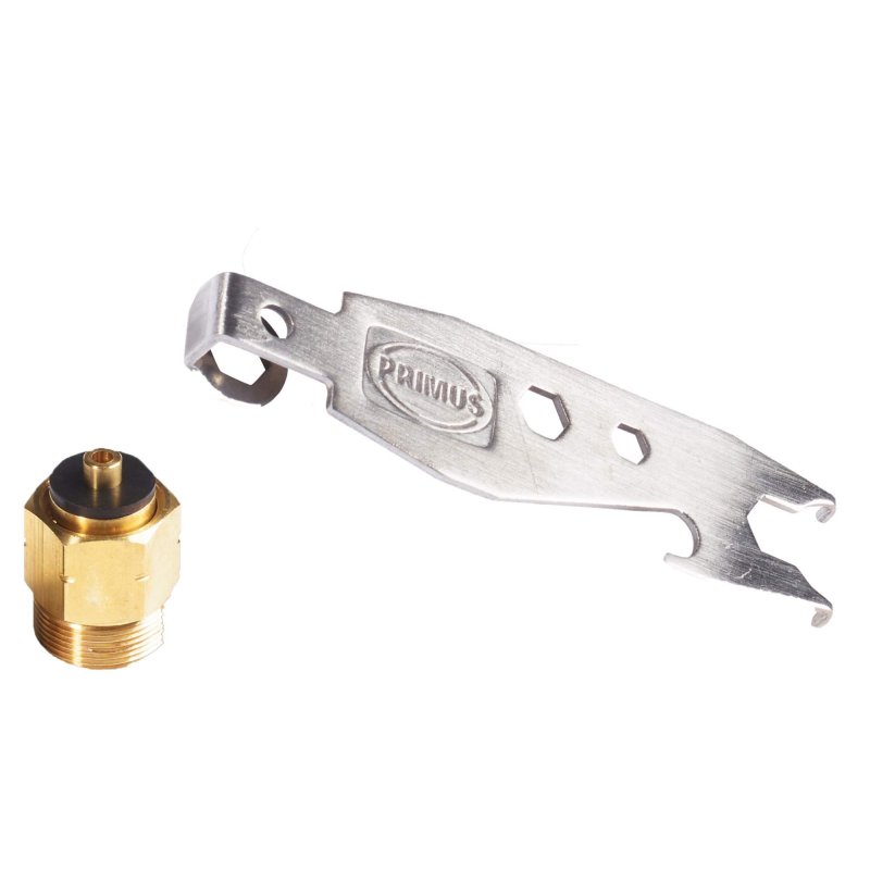 Adapter für die Zweiflammkocher Primus Kinjia, Tupike und Kuchoma. Der Adapter ermöglicht den Betrieb mit LPG-Gasflaschen.