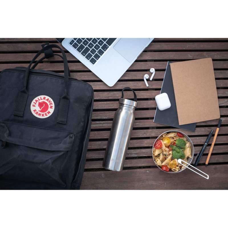 Robuste, einwandige Trinkflasche mit 0,7 l Volumen für dein Lieblingsgetränk. Mit Edelstahl-Kork-Verschluss und Kånken-Gurtband ist sie die ideale Begleitung zur Schule, Uni, ins Büro und auf Reisen.