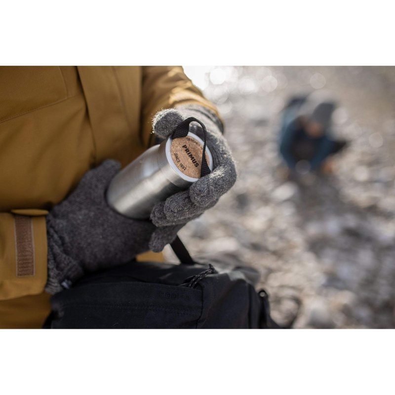 Der Schraubverschluss aus Edelstahl besitzt eine Korkoberfläche und schließt die Flasche tropfdicht ab. Auch der liegende Transport im Rucksack ist kein Problem. An der Kånken-Gurtbandschlaufe kannst du die Flasche bequem mit dir tragen oder am Rucksack sichern.