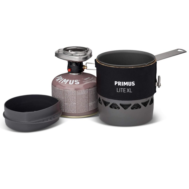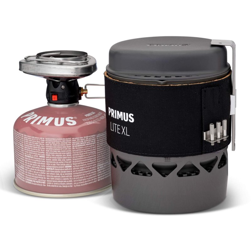 Als großer Bruder des neuen Primus All-in-one Kocher Lite+ kommt der Lite XL standesgemäß mit einem größeren 1-Liter Topf und den dazu passenden festen silikonummantelten Topfgriffen.