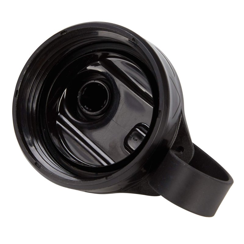 Der Trinkverschluss wird mit einer Kappe sicher verscharubt, die zusätzlich am Deckel gegen Verlust gesichert ist. Das Deckelband dient gleichzeitig als Schlaufe, um die Flasche am Rucksack zu befestigen.