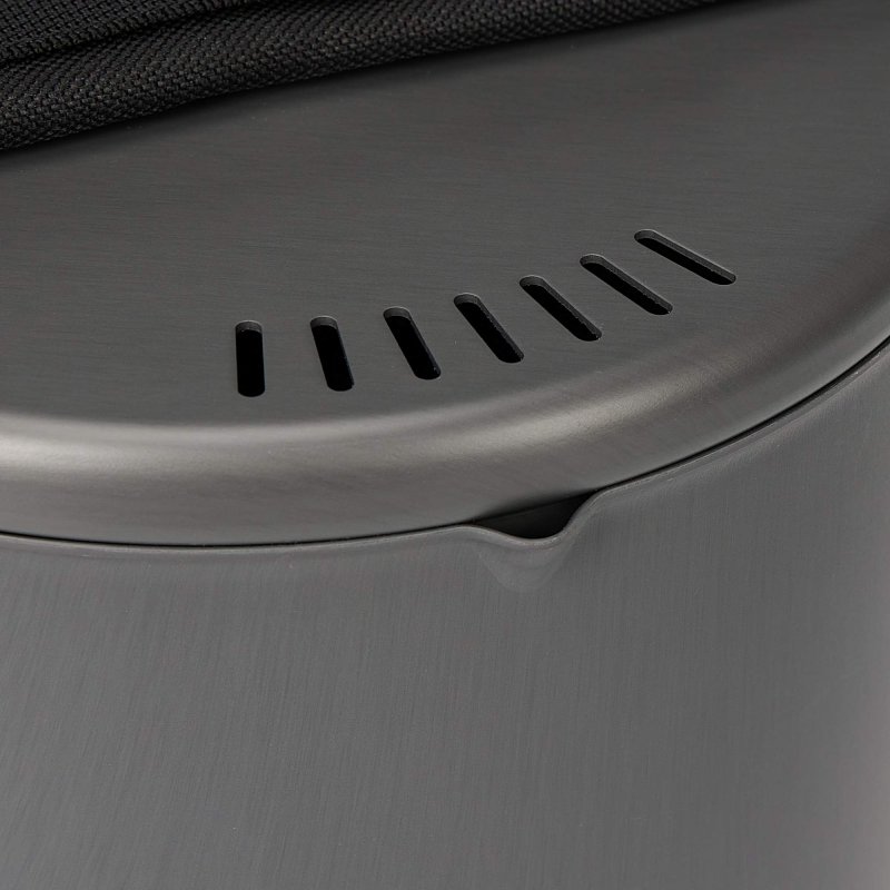 In diesen Topf wurde viel Know-how und Liebe zum Detail gesteckt. Besonders aufwendig gefertigt ist der Topfboden. Das heruntergezogene Design schützt die Flamme vor Wind, und der seitlich angebrachte Wärmetauscher fängt vorbeiströmende Wärme auf und leitet sie an die Topfwand weiter. Das spart Brennstoff, Gewicht im Rucksack und auf Dauer auch Geld im Portemonnaie.