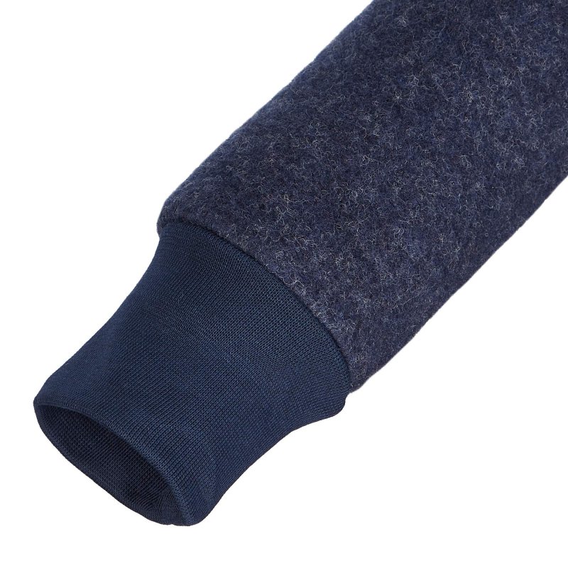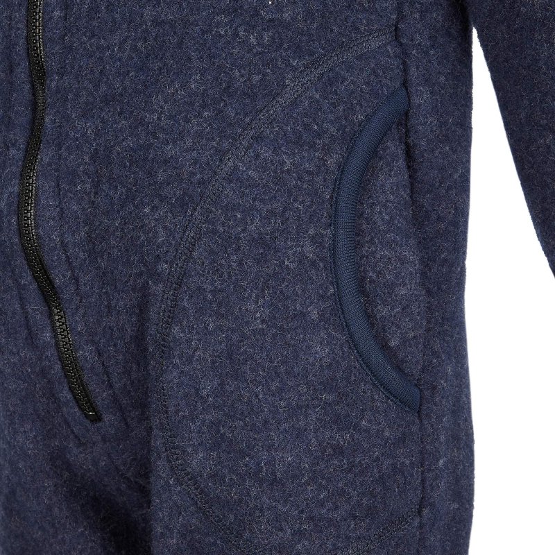 Der Wollfleece-Anzug ist aus reiner Bio-Merinowolle gefertigt, ist flauschig weich und hält angenehm warm. Merinowolle wirkt auf natürliche Weise feuchtigkeitsleitend und temperaturausgleichend. Dank dieser Eigenschaften sorgt das Material jederzeit für ein angenehmes Körperklima, egal ob die Kleinen gerade durch das Herbstlaub rennen oder sich entspannt von den Eltern durch die Natur tragen lassen. Zudem wärmt Wolle auch im feuchten Zustand, so braucht im Falle eines kleinen Nieselregens nicht gleich zur Regenbekleidung gewechselt zu werden. In den beiden Einschubtaschen können glänzende Kastanien und andere liebgewonnene Fundstücke zwischengelagert werden.