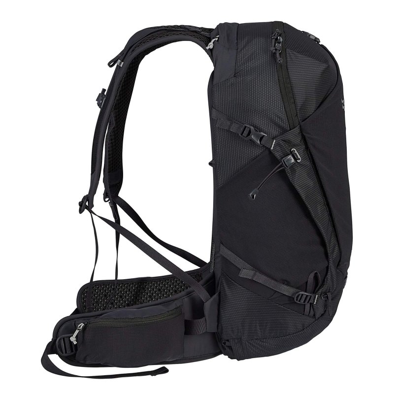 Mit den Fächern des Protium 20 bist du bestens gerüstet für deine Tageswanderung. Für die Flüssigkeitsversorgung unterwegs kannst du den Tagesrucksack mit einer Trinkblase ausstatten. Alternativ bieten zwei seitliche Steckfächer Platz für Trinkflaschen. Dank der RV-Taschen auf den Hüftflossen sind auch Energieriegel und andere Kleinigkeiten immer schnell zur Hand. Das elastische Steckfach auf der Front eignet sich ideal für leichte Ausrüstung, zum Beispiel eine dünne Regenjacke oder ein Sitzkissen. Auch deine Trekkingstöcke sind dank eigener Befestigungsmöglichkeit auf der Front immer nur einen Handgriff entfernt.